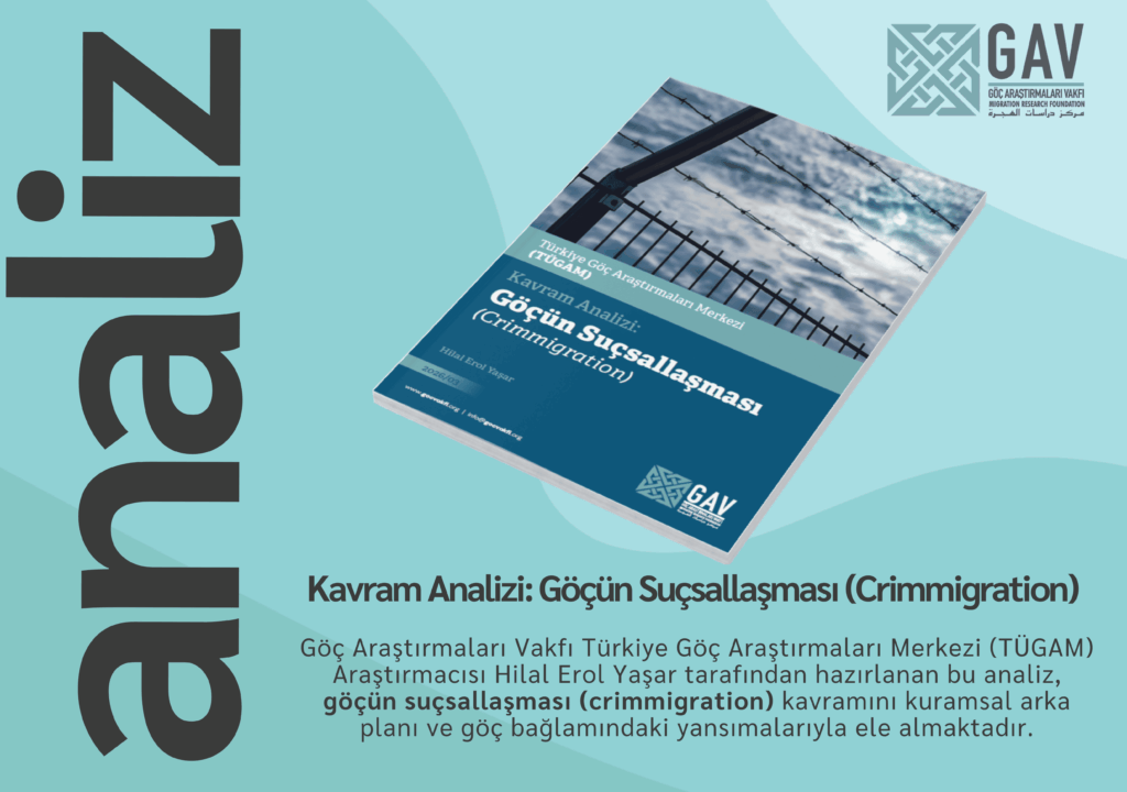 Göç Araştırmaları Vakfı Türkiye Göç Araştırmaları Merkezi (TÜGAM) Araştırmacısı Hilal Erol Yaşar tarafından hazırlanan bu analiz, göçün suçsallaşması (crimmigration) kavramını kuramsal arka planı ve göç bağlamındaki yansımalarıyla ...