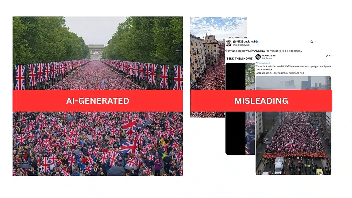 Son aylarda Avrupa genelinde radikal sağ partiler tarafından çok sayıda göçmen karşıtı miting düzenlenirken, internetteki videolar mevcut protesto hareketinin boyutunu çarpıtmak için yanıltıcı bir şekilde kullanılıyor. Pazar günü Londra’da düzenlenen