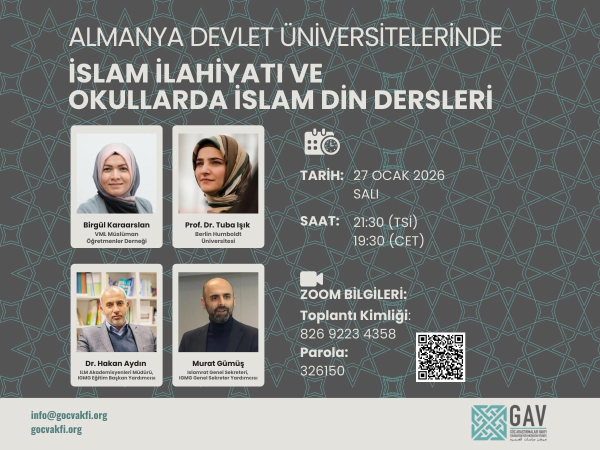 “Almanya Devlet Üniversitelerinde İslam İlahiyatı ve Okullarda İslam Din Dersleri” başlıklı webinarımıza davetlisiniz.