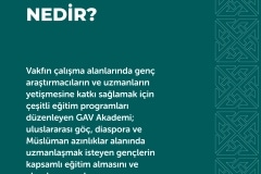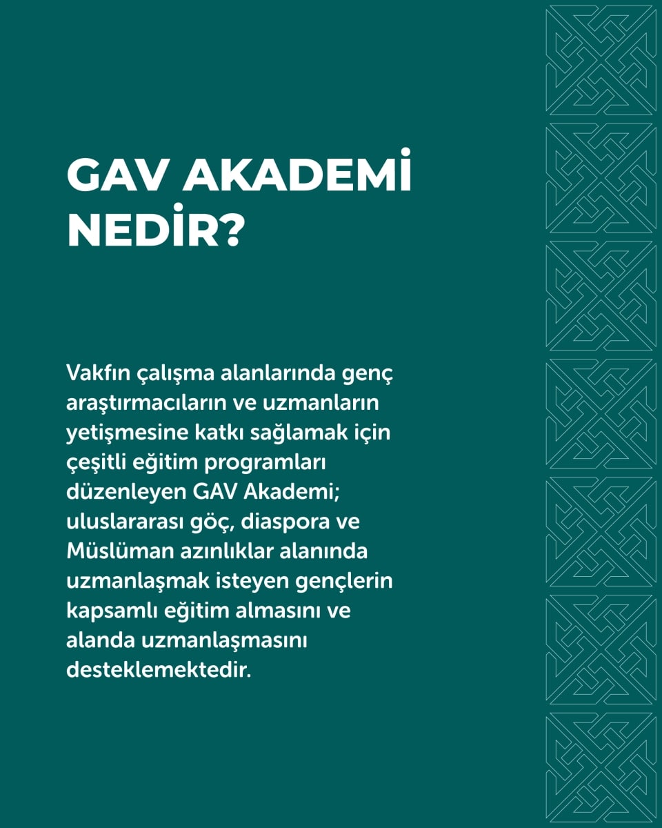 Göç Araştırmaları Vakfı, Göç ve Diaspora Akademisi olarak bünyesinde her yıl farklı düzeylerde katılımcılara yönelik kademelendirilmiş eğitim modülleri düzenlenmektedir. Akademinin alt modüllerinden biri olan Diaspora Politikaları ve Yönetimi İhtisas Programı, alana ilişkin ileri düzey bir eğitim programıdır.