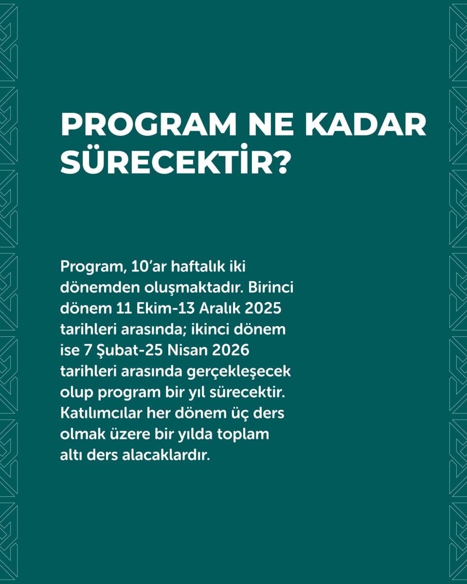 ● Program 11 Ekim 2025 tarihinde başlayıp 25 Nisan 2026’da bitecek ve 1 yıl sürecektir.