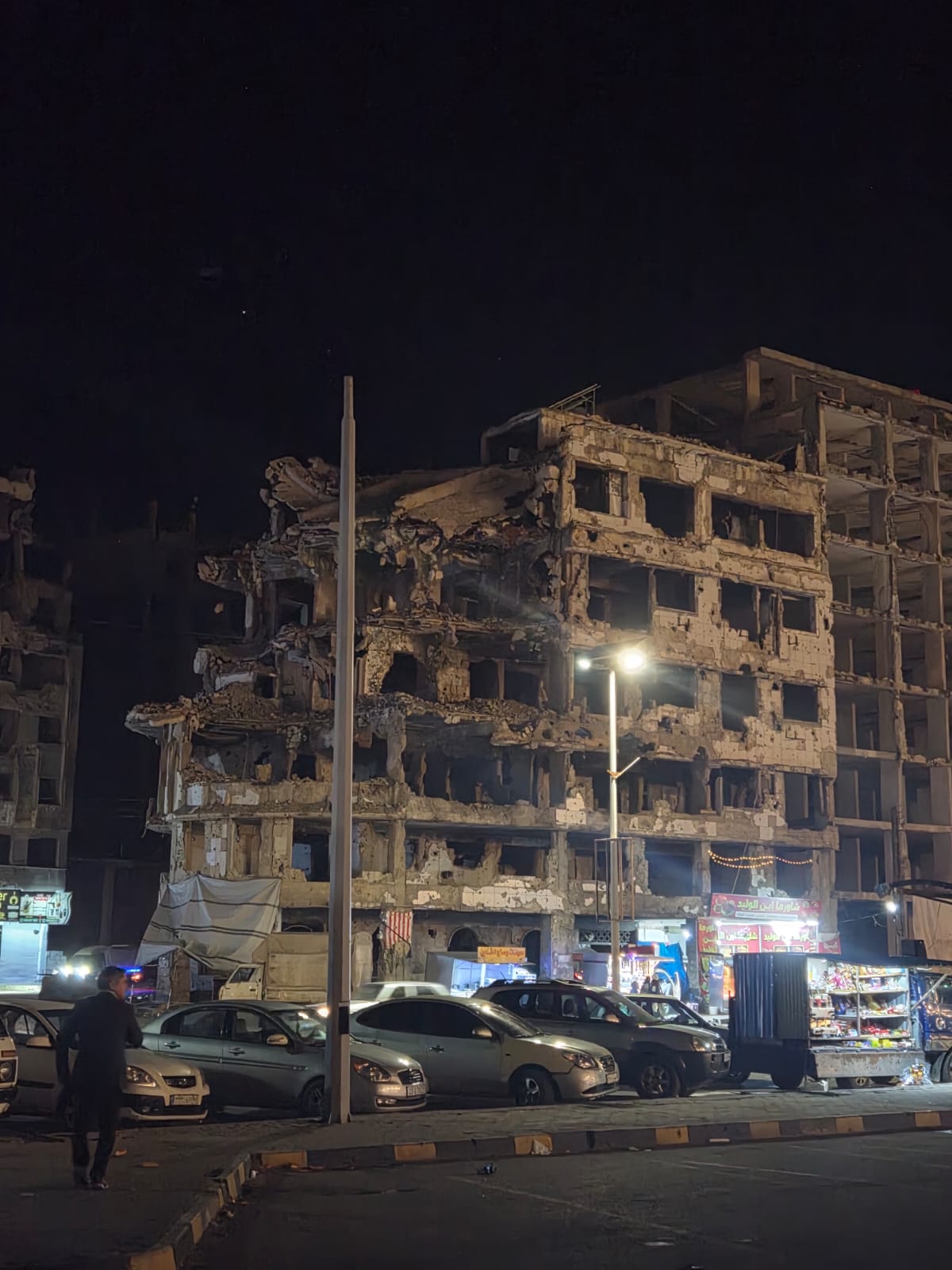Öte yandan, başkent Şam’ın Yermuk mahallesi, en büyük yıkım gören yerlerden biri.Evlerin büyük kısmı ağır hasar görmüş. Şehrin o büyük mahallesi yerle bir edilmiş. Ama insanların yaşama tutunma azmi ve belki de mecburi dayanıklılıkları tarihe geçecek. O hasarlı binalarda kimi aileler bir daireyi kendi imkanlarıyla tamir etmeye çalışmış ve orada yaşamlarını sürdürmeye çalışıyor. Kimi o yıkık binanın alt katında sebze meyve satmaya çalışıyor ya da bir bakkal dükkanı açarak kendi ekmek parasını kazanmaya çalışıyor. Yıkıntılar arasında yaşam sürüyor ve umutlar yeşertilmeye çalışılıyor. Bir film karesi gibi, ama değil… Sanki II. Dünya Savaşı’yla ilgili bir belgesel karşımızda duram, ama o da değil. Acı bir gerçek tam karşımızdaki. İnsanın insana yaptığı zulümün acı tanığı. 21. Yüzyılın 25. yılında gözümüzün önünde Ortadoğu’da bir devlet ve bir millet daha yok edilmeye çalışıldı. Uluslararası kuruluşlar, başat devletler ve küresel toplum sessiz kaldı… Şimdi o kadim toprakların insanlarının büyük azmiyle bir ülke küllerinden yeniden doğmaya çalışıyor.