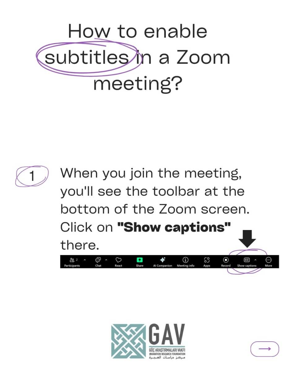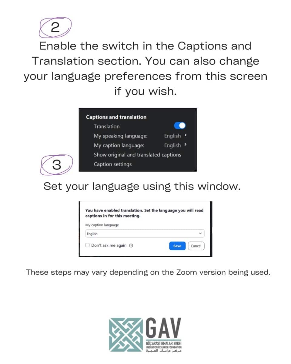 The webinar will be held in Turkish, and English subtitles will be provided. You can use the instructions in the images to enable the English subtitle option.